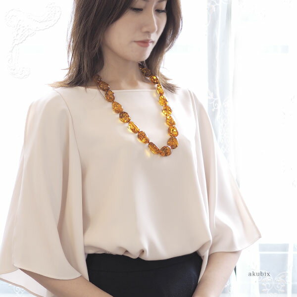 バルト海産の美しいSランクの琥珀を使ったナチュラルなネックレス。