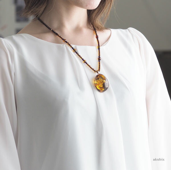 留め具まで琥珀を使用しているのでアレルギーの方にもオススメです。