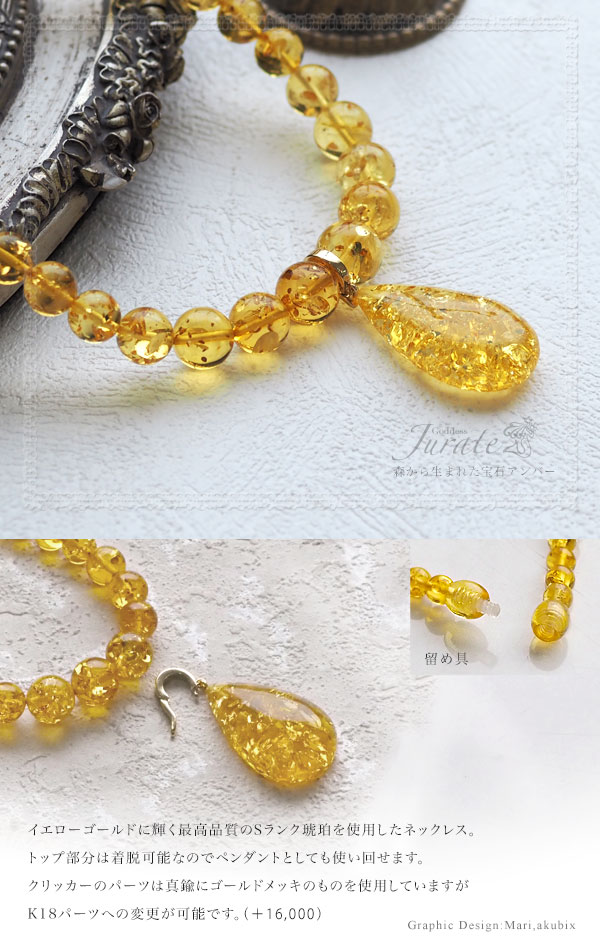 /インターナショナルアンバー協会認定正規品 /原産地:リトアニア共和国 /宝石:バルト海産出 天然琥珀 /金属:真鍮にGold Coating ※追加料金16,000円でK18パーツへの変更が可能です。