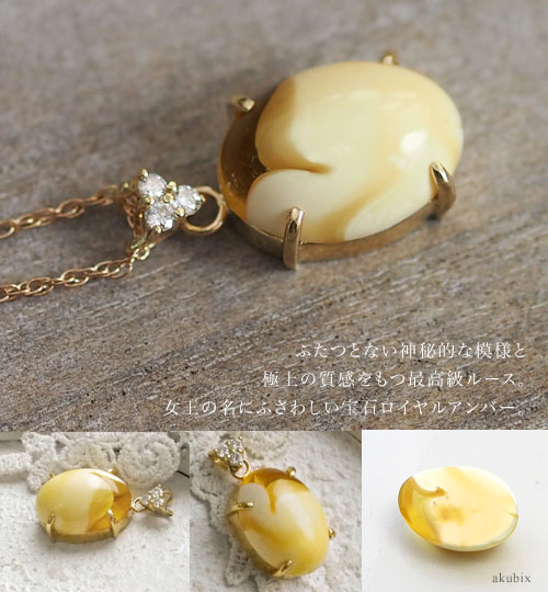ゴールドアンバーの部分は非常に透明度が高く、ロイヤルアンバーは密度の濃い美しい白色をしています。