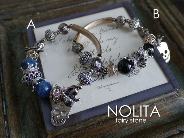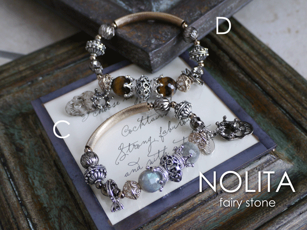 ラグジュアリーなブレスレットで女子力上げちゃいましょう! 【石の意味・効果】 ○オニキス Onyx ○タイガーアイ Tiger'Eye ○ラブラドライト Labradorite ○アパタイト Appetite 効果が知りたい方はクリックしてみて下さいね> メタルと天然石のカッコカワイイ チャーム パワーストーン ブレスレット NOLITA fairy stone Diva ★